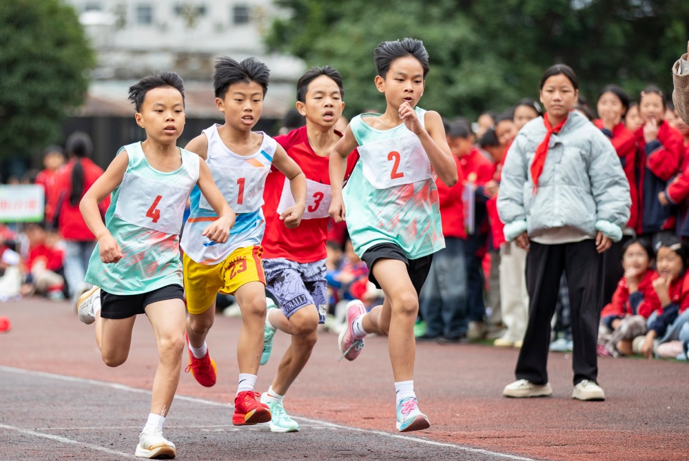 11月12日,從江縣剛邊壯族鄉中心小學學生在校園運動會上參加中長跑比賽。2025年11月12日,從江縣剛邊壯族鄉中心小學舉行冬季校園運動會,學生們積極參加多個體育競技項目比賽,盡享運動帶來的樂趣。近年來,從江縣深入推進“體育+”育人工程,組織各中小學開展豐富多彩的校園體育活動,讓學生們在體育運動中愉悅身心、增強體質、磨煉意志,助力健康成長。